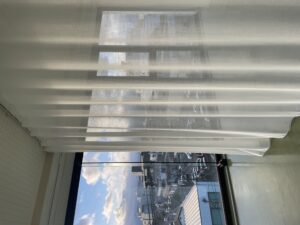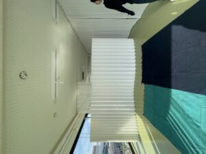 福島県郡山市西ノ内ビル5階に移転されたパーソナルトレーニングスタジオ「uliuli」様の内装リノベーション工事を担当いたしました。大きな開口部から自然光がたっぷりと入る、眺望に恵まれた空間。この立地の魅力を最大限に活かすため、白を基調としたシンプルな内装でまとめ、光と景色が主役になる設計としています。床は既存の風合いを活かしつつ、空間全体を軽やかにコーディネート。レイアウトは圧迫感を感じさせないよう計画し、パーソナルトレーニングに集中できる落ち着いた環境を整えました。やわらかなカーテンで空間を緩やかに仕切ることで、プライバシーに配慮しながらも閉塞感のない構成としています。